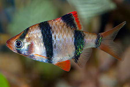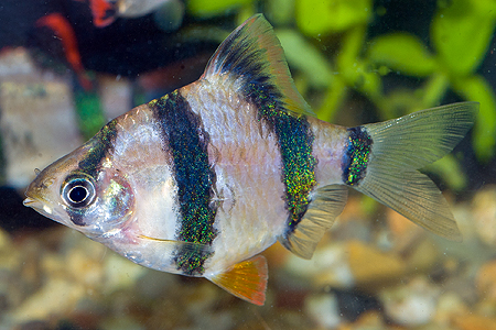 | parmička čtyřpruhá | Puntius (Systomus) tetrazona | 'Systomus' tetrazona |
