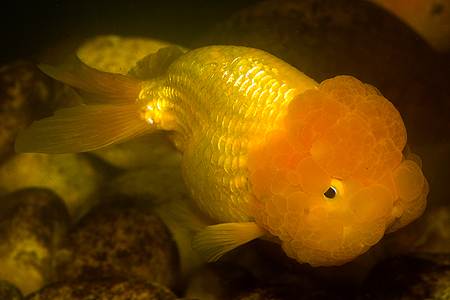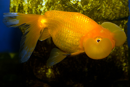 Pompon („bambulka“): Tvarem těla a oploutvením odpovídá nebehledkám a bublinoočkám, na rozdíl od nich má oči normální, zato hypertrofované přepážky nozder vytvářejí dvojici kyticím (nebo bambulím) podobných útvarů na hřbetní straně hlavy. Aby to nebylo tak jednoduché, je třeba upozornit, že občas se „bambule“ objevují i u forem s hřbetní ploutví, protože tento znak byl přikřížen také některým orandám, teleskopkám apod.