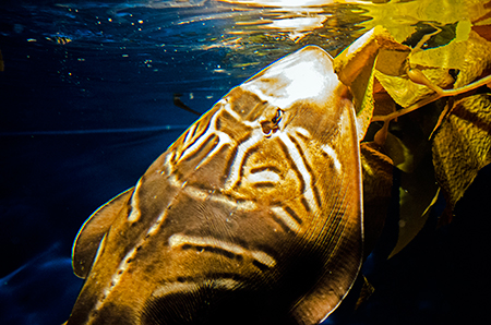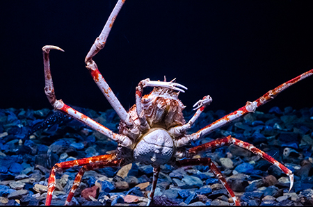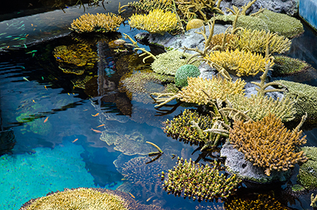 Když se sejde do přízemí, cesta kolem centrální nádrže se opakuje, nikoli však samoúčelně. Existuje řada ryb, které do středních či horních partií vodního sloupce nevystupují a zůstávají v blízkosti dna, pod převisy, v jeskyních. To všechno tady je, a tak se návštěvník může seznámit s kanici, podobnými, ale ve veřejných akváriích daleko méně běžnými mnohopiláky, murénami nebo odpočívajícími máčkami. Protilehlá strana opět patří menším akváriím, kde lze objevit skutečné poklady málokdy viděné, jako jsou velekrabi japonští (Macrocheira kaempferi), chiméry běloskvrnné (Hydrolagus colliei) nebo třeba kolekce ryb od jižního pobřeží Austrálie.