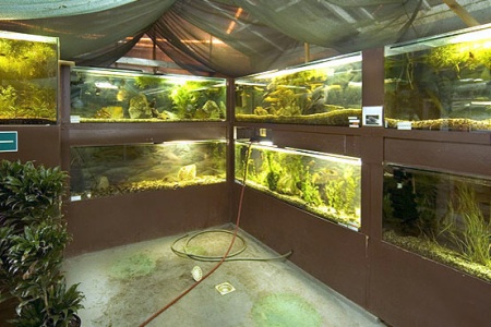 V jedenácti velkých nádržích jsou chovány především velké ryby (ostnojazyčnatec, keříčkovec, cichlidy klínoskvrnné nebo hejno piraní, najdeme tu ale i hejna drobných rybek (neonky, paví očka či duhovky).