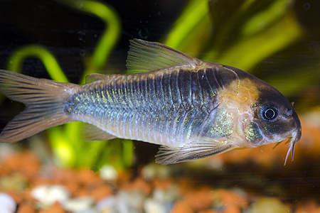 Pro všechny, kteří mají potíže s odlišením pancéřníčka zelenavého (Corydoras eques) od pancéřníčka zeleného (Corydoras aeneus): takto vypadá typicky zbarvený pancéřníček zelenavý