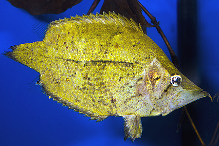 Neobvyklé, vzácně chované a jen zřídka vystavované ryby reprezentoval na letošní hradecké výstavě ostnáč listový (Monocirrhus polyacanthus)