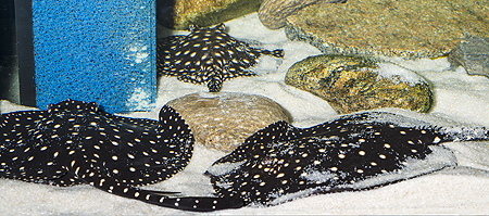 Trnuchy byly letos zastoupeny dvěma druhy, v případě druhu Potamotrygon reticulatus byli k vidění dospělci (na snímku) i odchovaná mláďata. Druhové určení je však velmi problematické – podle současného názoru systematiků není Potamotrygon reticulatus platným druhem a takto označované trnuchy patří do druhu Potamotrygon orbignyi. Je však také možné, že se pod tímto označením skrývají nesprávně určení příslušníci druhu Potamotrygon magdalenae