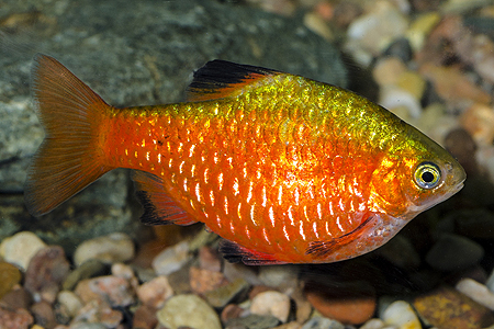 Dávno známým nenáročným druhem je parmička nádherná (Pethia, dříve Puntius conchonius). Forma na snímku se ale od původní přírodní formy značně liší svým zbarvením. Ve světě se občas označuje jako „neon“. Sytě červené zbarvení mají obě pohlaví trvale, nezávisle na době rozmnožování