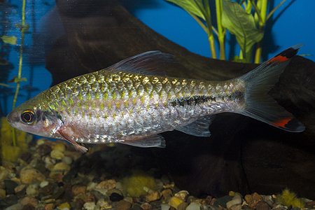 Dospělé, plně vzrostlé a vybarvené ryby vypadají často podstatně jinak (a atraktivněji) než mláďata nabízená běžně k prodeji. Platí to pro dánio malabarské (Devario malabaricus)...