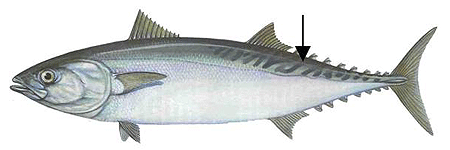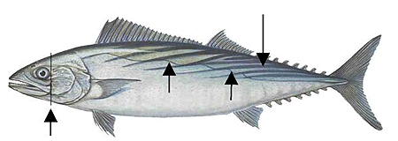 Nejčastější druh, označující se u nás jako bonito. Obvykle má zadní část hřbetu nápadně pruhovanou. Existují však jedinci toto pruhování zcela postrádající. Dobrým determinačním znakem je výrazně zvlněná postranní čára (obrázek) a hluboce rozeklaná tlama, zadním okrajem dosahující až za oko.