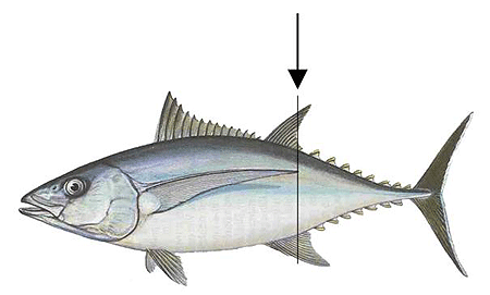 Z větších tuňáků má nejkvalitnější maso. Jak název napovídá, jeho prsní ploutve jsou velmi dlouhé a dosahují až za druhou hřbetní ploutev.