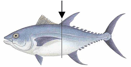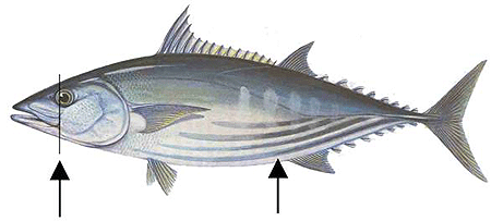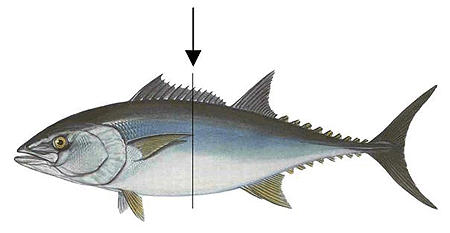 Největší z tuňáků, dosahující skutečně úctyhodných rozměrů. K nám se dodávají mladí jedinci menších rozměrů. Tuňák obecný je monotónně ocelově zbarven a má krátké prsní ploutve.
