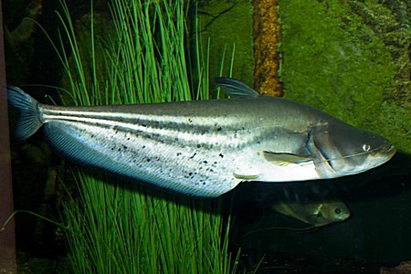Začneme u čeledi sumcovití (Siluridae), kde je rozdíl ve vzhledu, velikosti a způsobu života mezi některými příslušníky snad vůbec největší. Všichni asi známe sumce velkého (Silurus glanis), který žije i v naší přírodě a je jedním z pouhých dvou evropských zástupců této čeledi (ostatních více než 100 druhů pochází z Asie). Nočního dravce, který u nás běžně dorůstá přes 2 m délky a hmotnosti ke 100 kg, si nikdo do akvária pochopitelně nedá. Totéž platí i pro jeho asijské příbuzné podobného vzhledu a způsobu života, byť jsou třeba menší. Jednoho takového si představujeme na fotografii – sumec amurský (Silurus asotus) žije na Dálném východě od Ruska přes Koreu a Čínu po Japonsko. Většinou dosahuje velikosti pouze kolem 35 cm, která teoreticky umožňuje jeho chov v hodně velkém studenovodním akváriu nebo zahradním jezírku, jenže na druhé straně jsou známi i jedinci dlouzí dost přes metr.
