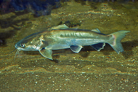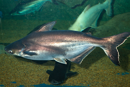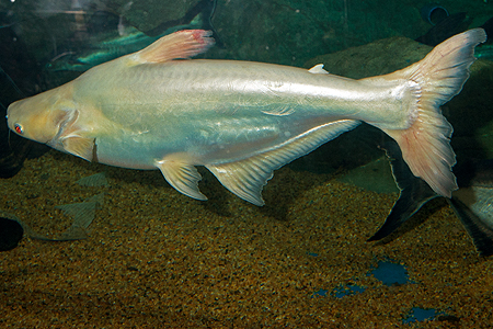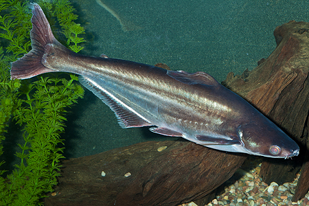Evergreenem akvaristických diskusních fór na internetu je dotaz na sladkovodní žraloky, kteří se dají chovat v akváriu. Žádný takový žralok samozřejmě neexistuje. I když občas vstupuje krátkodobě do sladkých vod přes 40 druhů paryb (žraloků a rejnoků), dlouhodobě v ní je schopen žít pouze dvou- až třímetrový žralok bělavý (Carcharhinus leucas), jen o něco málo menší žralok ganžský (Glyphis gangeticus) a několik jeho velmi málo probádaných příbuzných ze stejného rodu. Tito žraloci se pochopitelně v akvaristikách neprodávají. A na co se někteří zmatení a velmi neznalí začátečníci ptají? Odpověď není úplně jednoznačná. Slova „žralok“ či „žraločí“ se totiž objevují hlavně v anglických, ale do jisté míry i v německých názvech řady různých ryb. Často jde o ryby kaprovité, jako třeba parmičku žraločí (viz Chovatel 7/2012), labeo červenoocasé i červenoploutvé (8/2012) nebo rezatku čínskou (4/2013). Nejpravděpodobnějším cílem těchto dotazů jsou však „žraločí sumci“, česky pangasovití (čeleď Pangasiidae). Označení „žraločí“ v různých jazycích dostali tito asijští sumci (aktuálně je uznaných 28 druhů ve 4 rodech) blízce příbuzní sumčíkovitým (Schilbeidae – viz Chovatel 6/2013) podle několika podobných znaků – mají stříbřitě šedé až namodralé protáhlé tělo, oči po stranách hlavy, špičatou hřbetní ploutev, žraloky trochu připomínají i svým pohybem. Biologicky s nimi však nemají nic společného. Jsou to sladkovodní sumci živící se nejrůznější živočišnou i rostlinnou potravou, nijak zvlášť draví, kteří jsou aktivní i ve dne a téměř nepřetržitě plavou ve vodním sloupci.